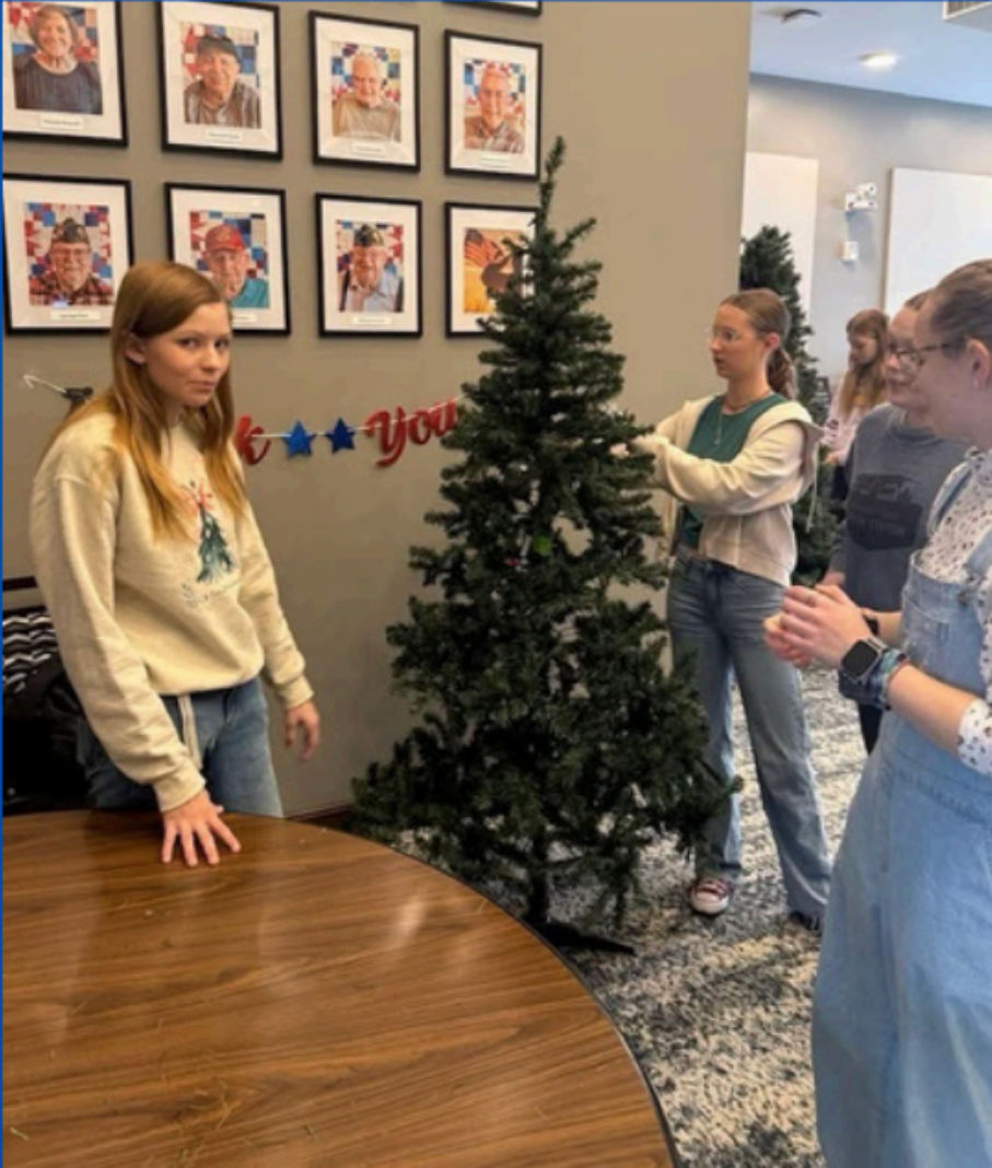 On Monday, December 1st, from 8:30-12:15 several FFA members and NHS members helped decorate at Dewitt Fieldstone. Our group worked together to decorate trees, windows, and different areas around the facility, we also went around and caroled for the residents eating lunch and sitting in there rooms. There were about 40 people helping in total, including three FFA memb
